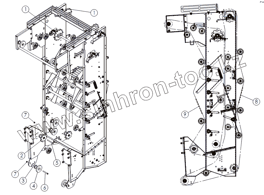 Каталог запасных частей к технике: Amity Wic Harvester 6 row 22s. Ременная цепь заднего очистителя
