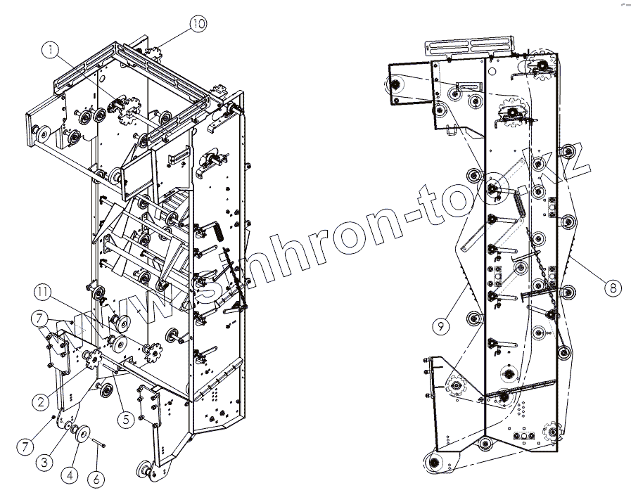 Каталог запасных частей к технике: Amity Wic Harvester 6 row 22s. Ременная цепь заднего очистителя
