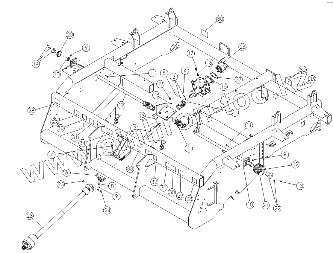 Каталог запасных частей к технике: Amity Wic Harvester 6 row 22s. Центральный привод с автономной гидросистемой