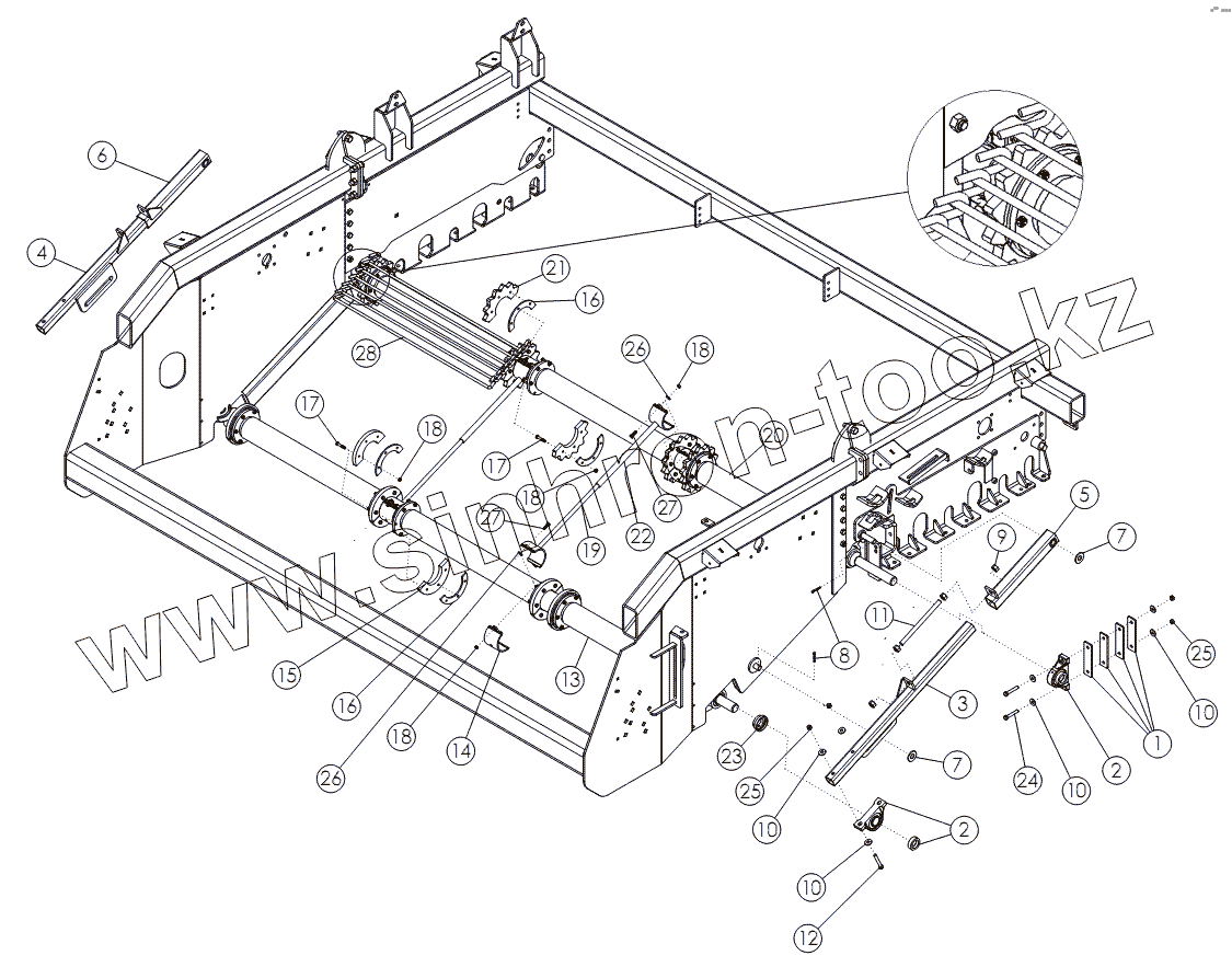 Каталог запасных частей к технике: Amity Wic Harvester 6 row 22w. APRON SHAFT - HOOK CHAIN