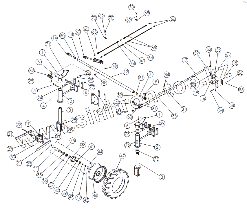 Каталог запасных частей к технике: Amity Wic Harvester 6 row 22w. STEERABLE REAR STRUTS
