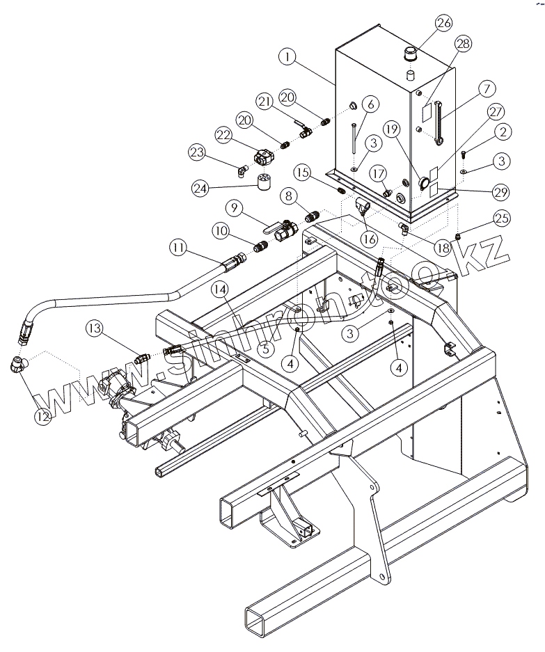Каталог запасных частей к технике: Amity Wic Harvester 6 row 24s. HYDRAULIC TANK