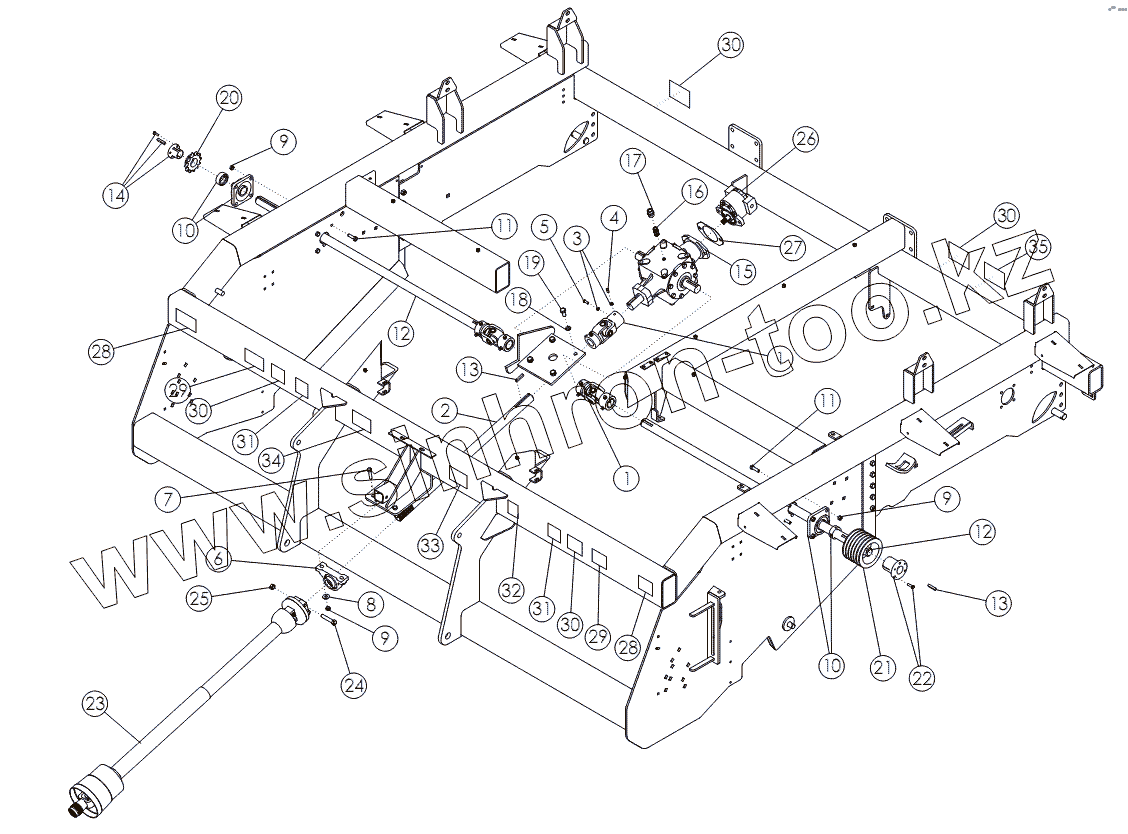 Каталог запасных частей к технике: Amity Wic Harvester 6 row 24s. MAIN DRIVE: ONBOARD OPTION