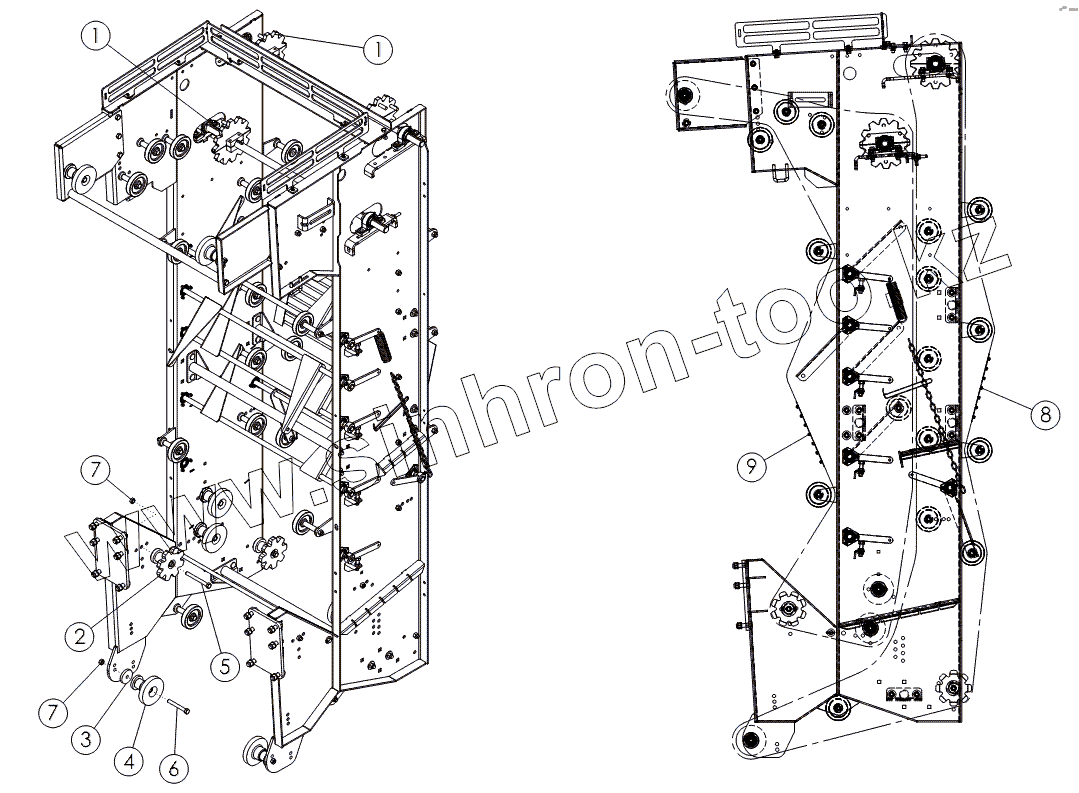 Каталог запасных частей к технике: Amity Wic Harvester 6 row 24s. REAR SCRUB: BELTED CHAIN 56MM