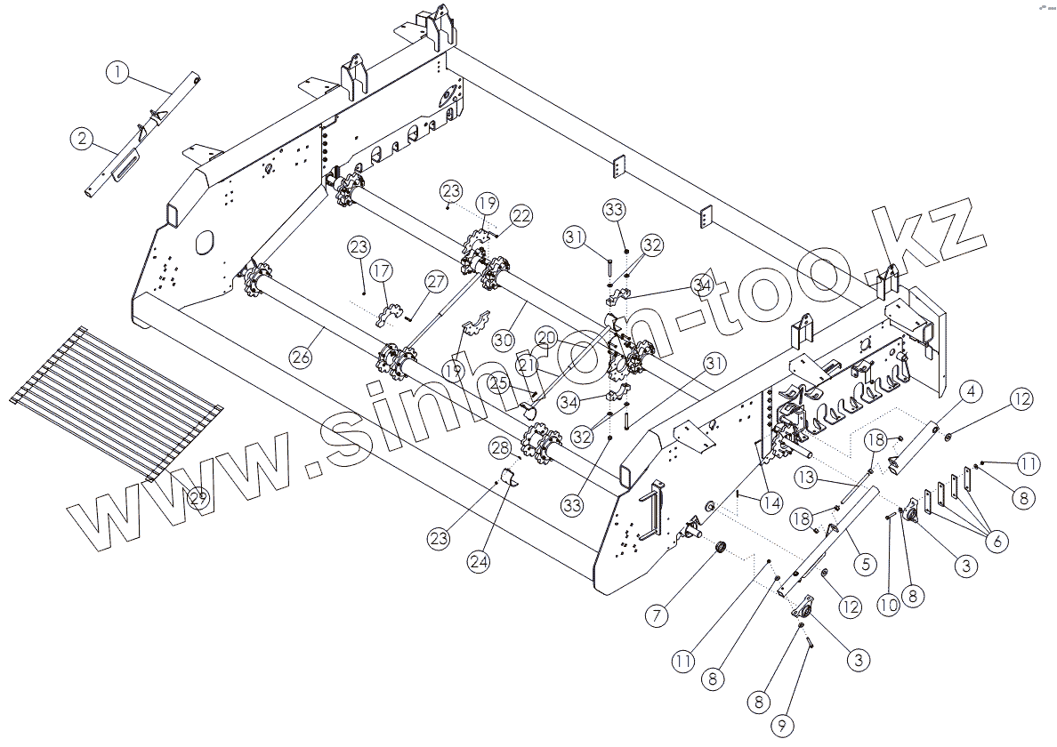 Каталог запасных частей к технике: Amity Wic Harvester 6 row 30s. APRON SHAFT - BELTED CHAIN