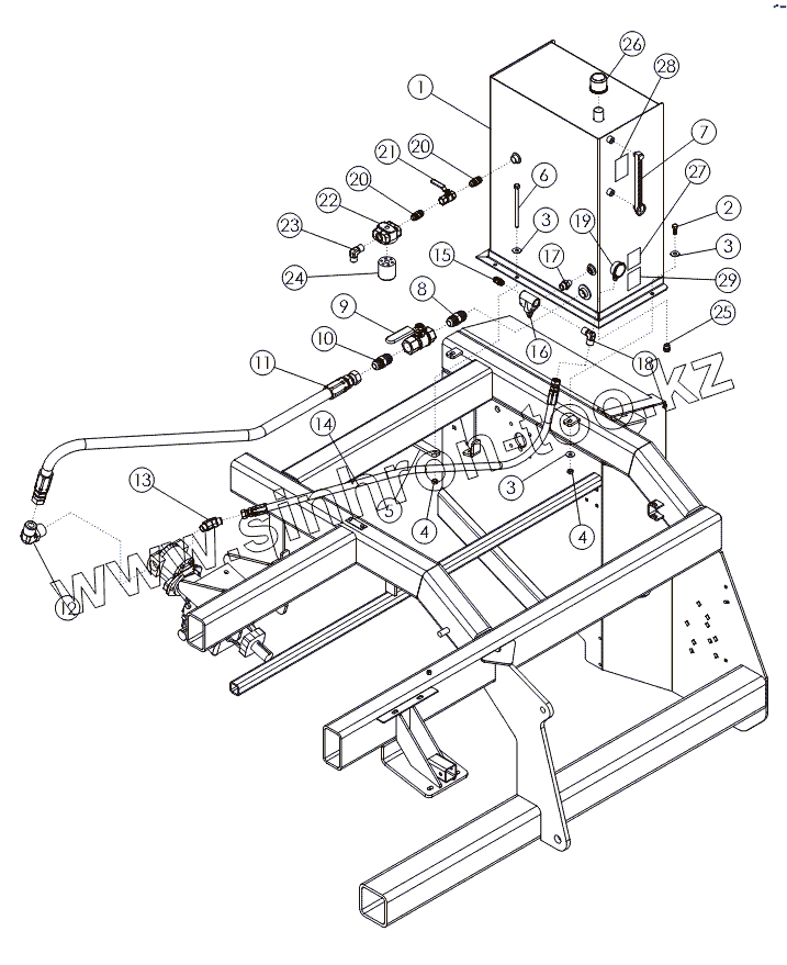 Каталог запасных частей к технике: Amity Wic Harvester 6 row 30s. HYDRAULIC TANK