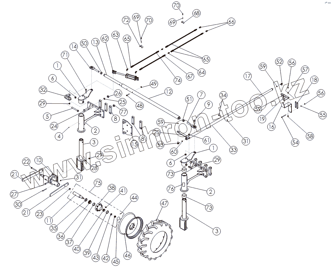 Каталог запасных частей к технике: Amity Wic Harvester 6 row 30w. STEERABLE REAR STRUTS