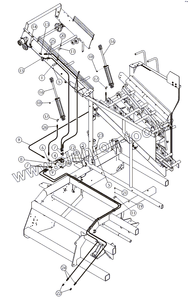 Каталог запасных частей к технике: Amity Wic Harvester 8 row 22s. Гидравлика накопительного бункера