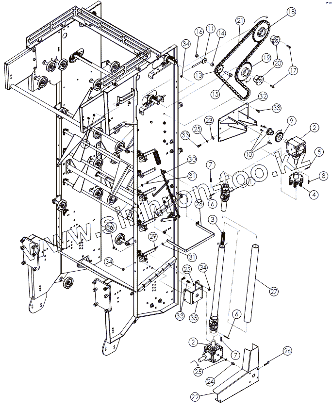 Каталог запасных частей к технике: Amity Wic Harvester 8 row 22s. Привод заднего очистителя