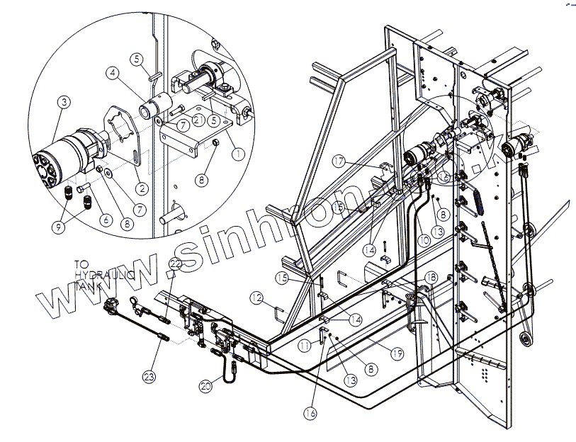 Каталог запасных частей к технике: Amity Wic Harvester 8 row 22s. Привод заднего очистителя