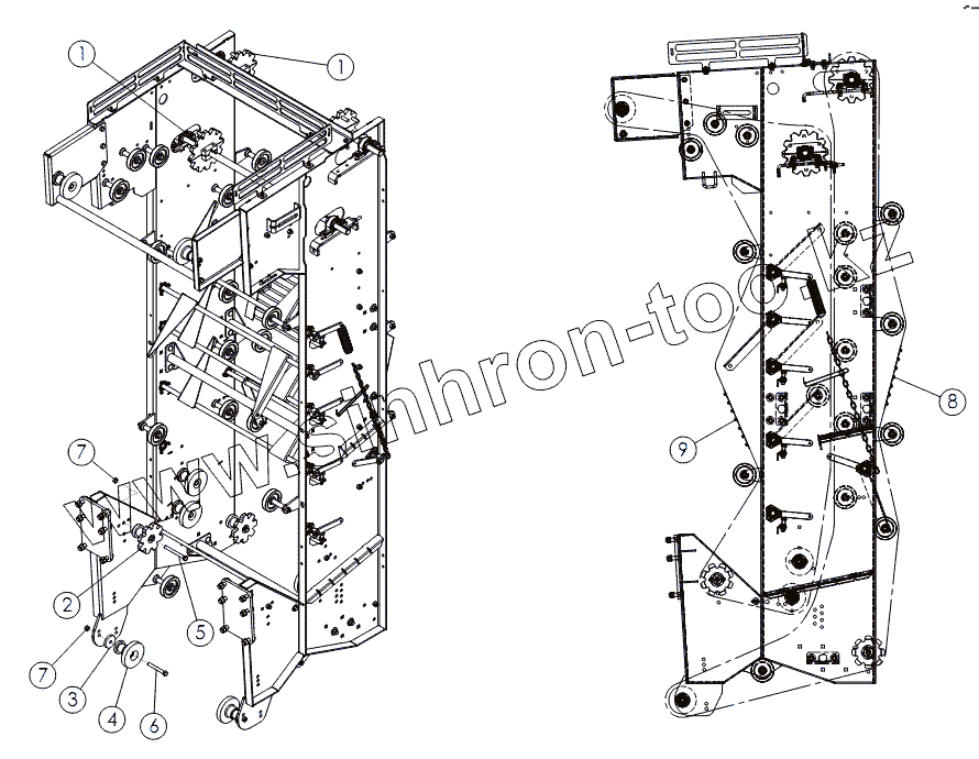 Каталог запасных частей к технике: Amity Wic Harvester 8 row 22s. Ременная цепь заднего очистителя