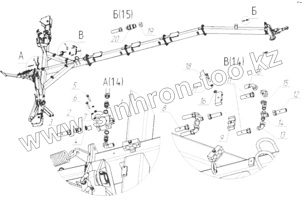 Каталог запасных частей к технике: БЭМЗ Грабли - валкователи ГВ 9,6. Система гидравлическая