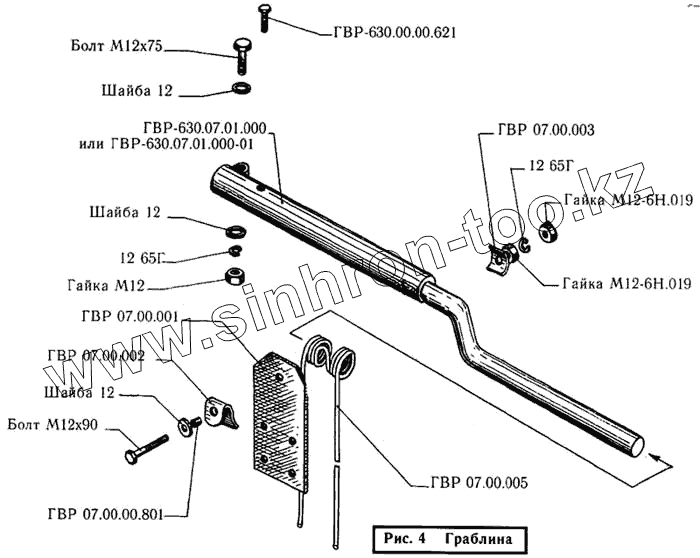 Каталог запасных частей к технике: Бобруйскагромаш (ОАО «УКХ «Бобруйскагромаш») ГВР-630. Граблина (номенклатура отсутствует)