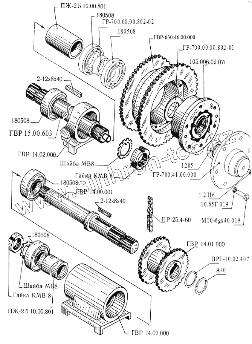 Каталог запасных частей к технике: Бобруйскагромаш (ОАО «УКХ «Бобруйскагромаш») ГВР-630. Привод цепной передачи