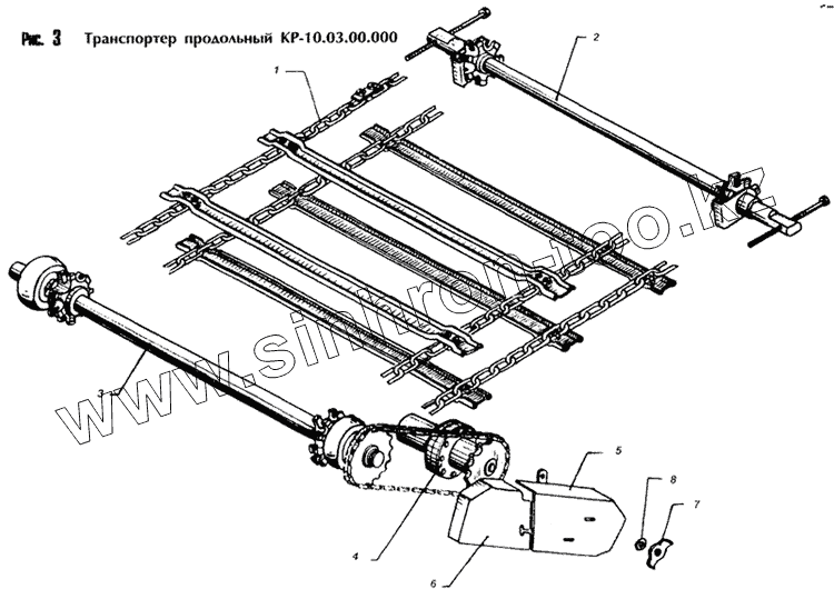 Каталог запасных частей к технике: Бобруйскагромаш (ОАО «УКХ «Бобруйскагромаш») КР-Ф-10. Транспортер продольный
