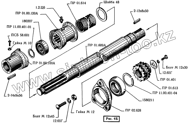 Каталог запасных частей к технике: Бобруйскагромаш (ОАО «УКХ «Бобруйскагромаш») ПРФ-750. Вал с полумуфтой