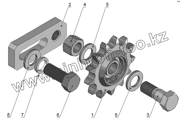 Каталог запасных частей к технике: Бобруйскагромаш (ОАО «УКХ «Бобруйскагромаш») ПРЛ-150. Натяжник в сборе