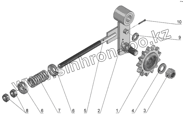 Каталог запасных частей к технике: Бобруйскагромаш (ОАО «УКХ «Бобруйскагромаш») ПРЛ-150. Натяжник в сборе