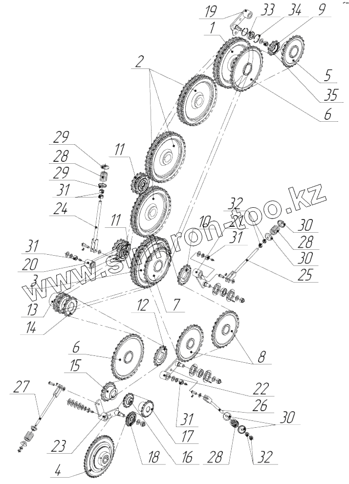Каталог запасных частей к технике: Бобруйскагромаш (ОАО «УКХ «Бобруйскагромаш») ПРМ-150. Цепные контура