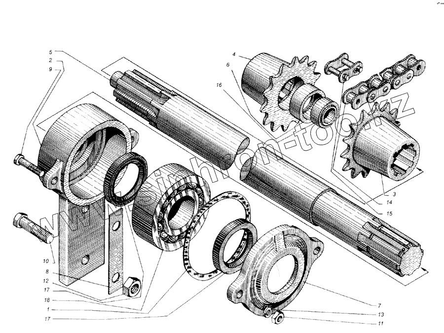 Каталог запасных частей к технике: Бобруйскагромаш (ОАО «УКХ «Бобруйскагромаш») ПРТ-10. Вал привода транспортера