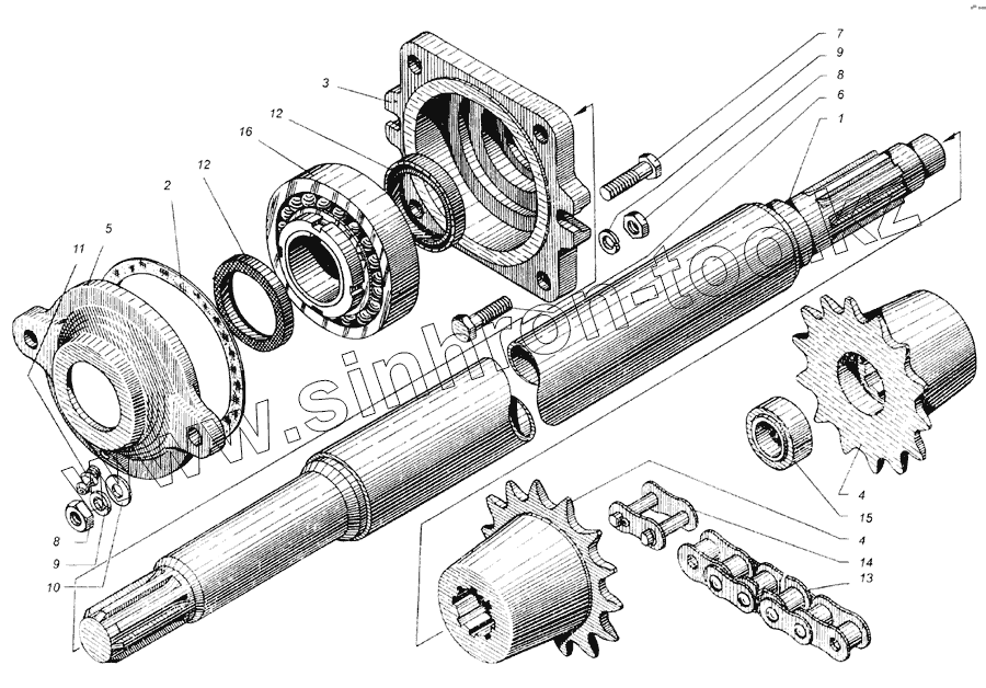 Каталог запасных частей к технике: Бобруйскагромаш (ОАО «УКХ «Бобруйскагромаш») ПРТ-10. Вал промежуточный