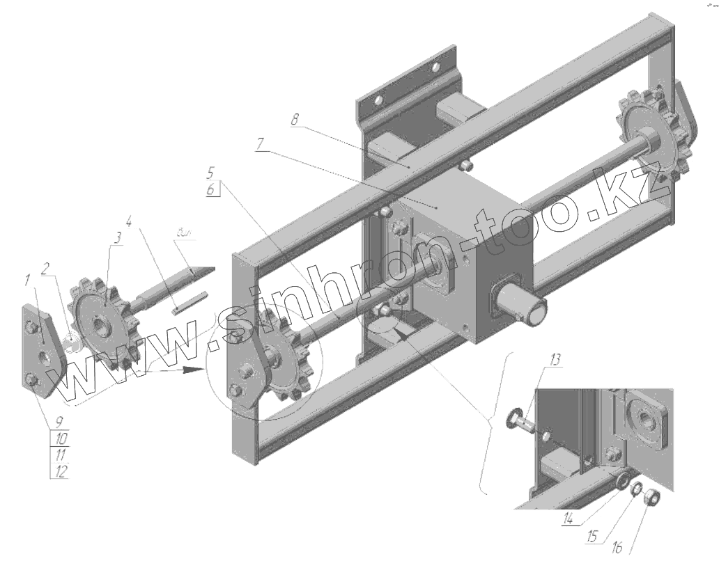 Каталог запасных частей к технике: Бобруйскагромаш (ОАО «УКХ «Бобруйскагромаш») РУ-7000. Привод шиберов