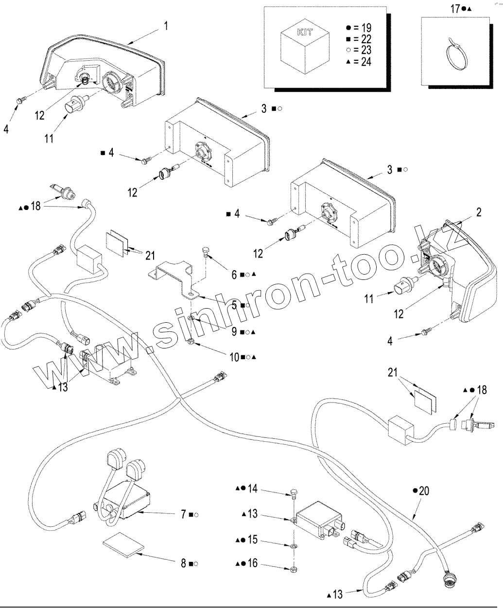Каталог запасных частей к технике: CASE IH 430 Steiger 4WD. HEADLAMPS - NORTH AMERICA