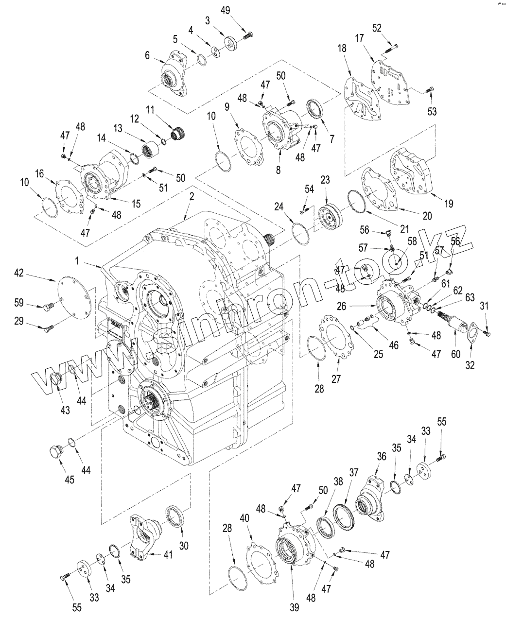 Каталог запасных частей к технике: CASE IH 430 Steiger 4WD. POWER SHIFT TRANSMISSION - COVERS AND YOKES