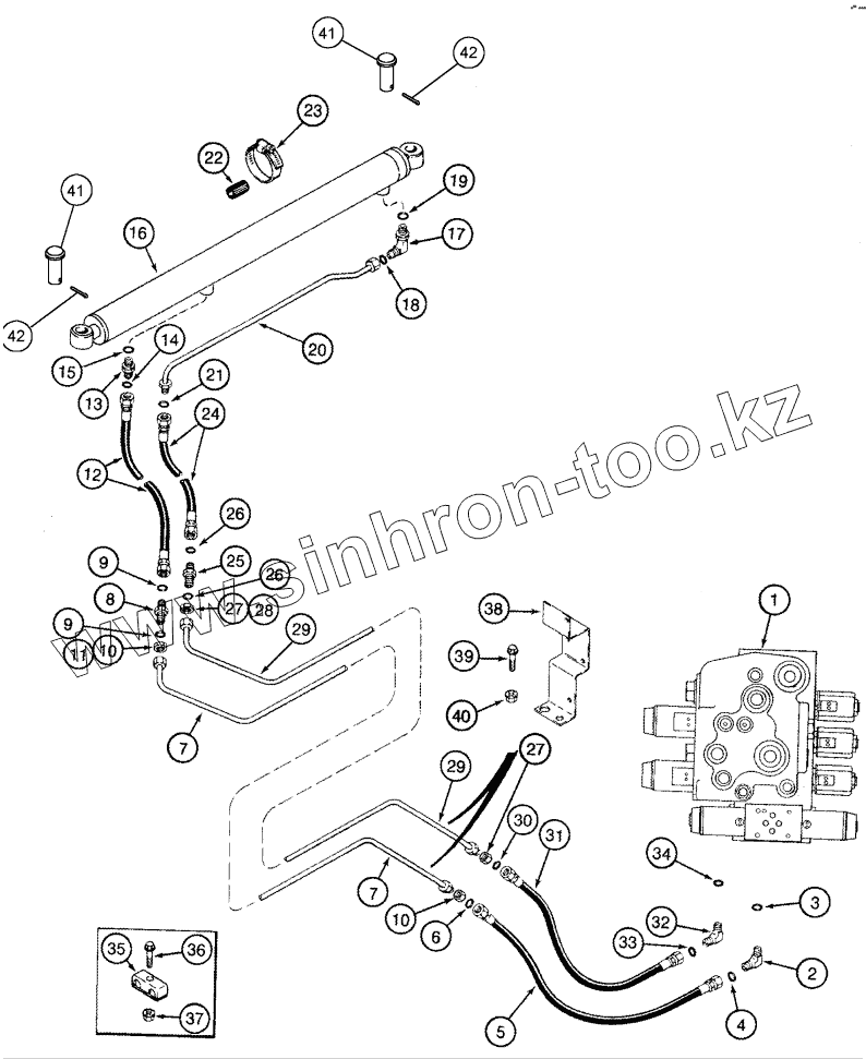 Каталог запасных частей к технике: CASE IH Axial Flow 2388. HYDRAULICS - UNLOADER TUBE SWING CYLINDER