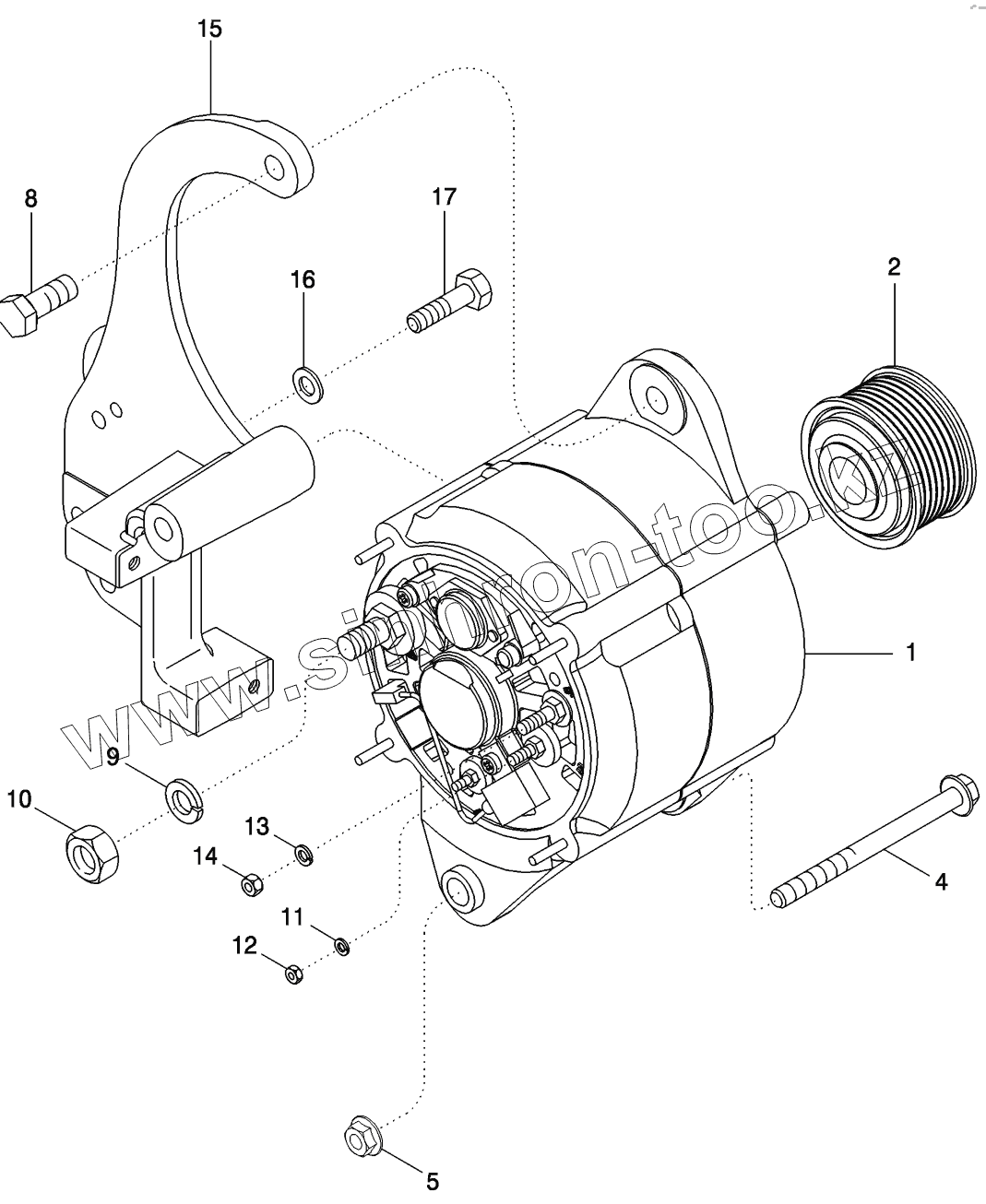 Каталог запасных частей к технике: CASE IH MX-240 Magnum. ALTERNATOR - MOUNTING