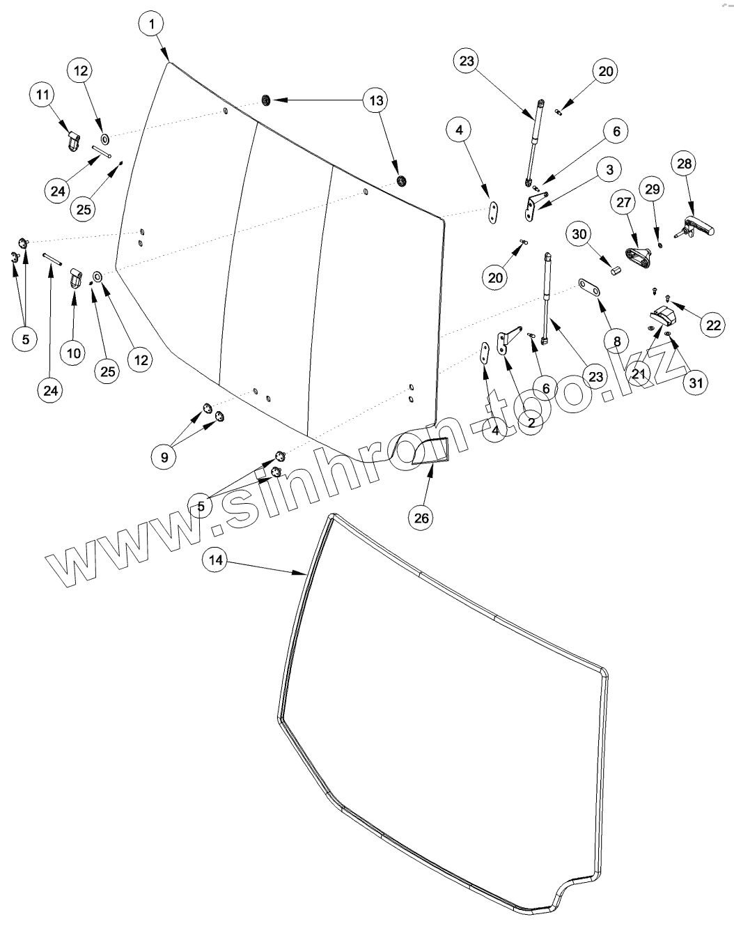 Каталог запасных частей к технике: CASE IH MX-240 Magnum. CAB - REAR WINDOW