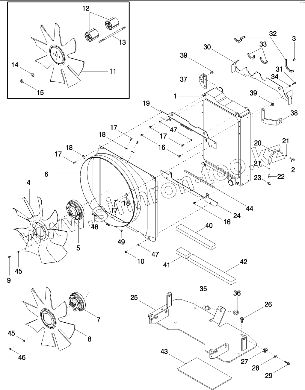 Каталог запасных частей к технике: CASE IH MX-240 Magnum. RADIATOR AND FAN SHROUD