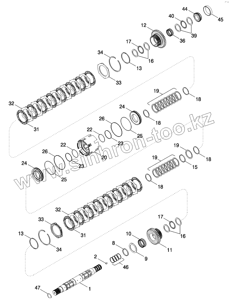 Каталог запасных частей к технике: CASE IH MX-255 Magnum. SPEED TRANSMISSION - OUTPUT SHAFT FRONT CLUTCH