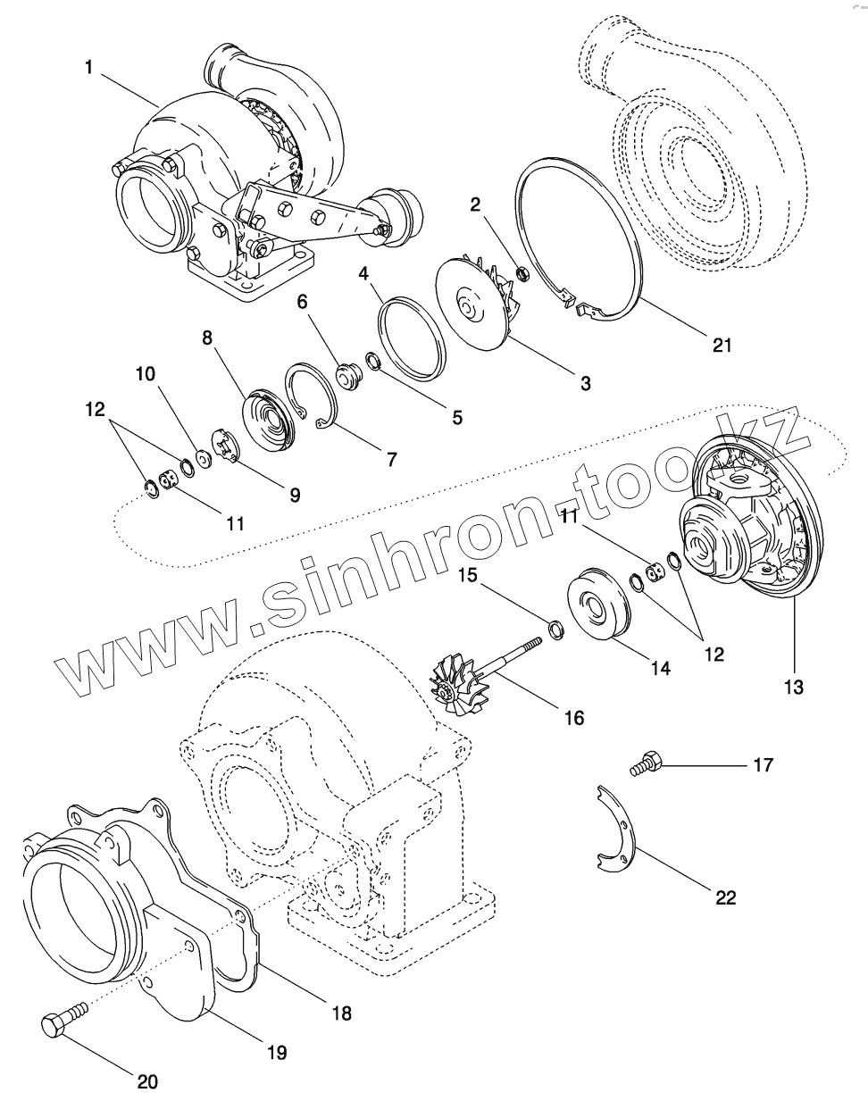 Каталог запасных частей к технике: CASE IH MX-255 Magnum. TURBOCHARGER ASSEMBLY