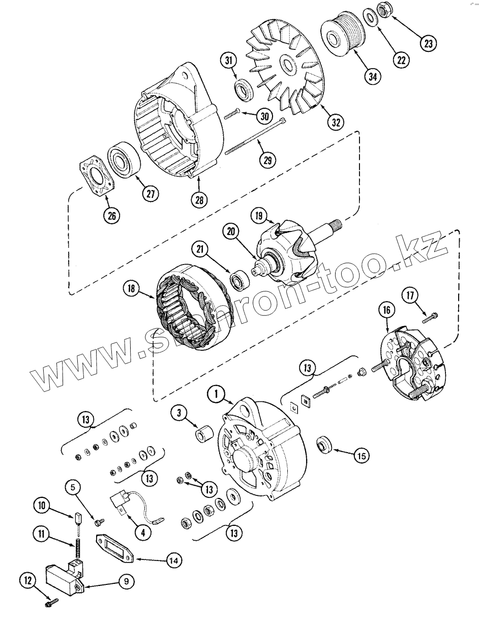 Каталог запасных частей к технике: CASE IH MX-285 Magnum. ALTERNATOR ASSEMBLY - 135 AMPERE