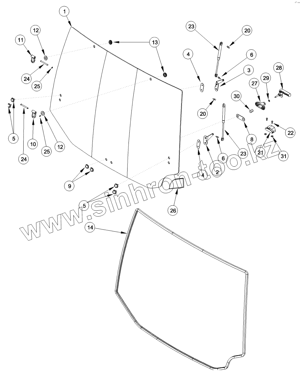 Каталог запасных частей к технике: CASE IH MX-285 Magnum. CAB - REAR WINDOW