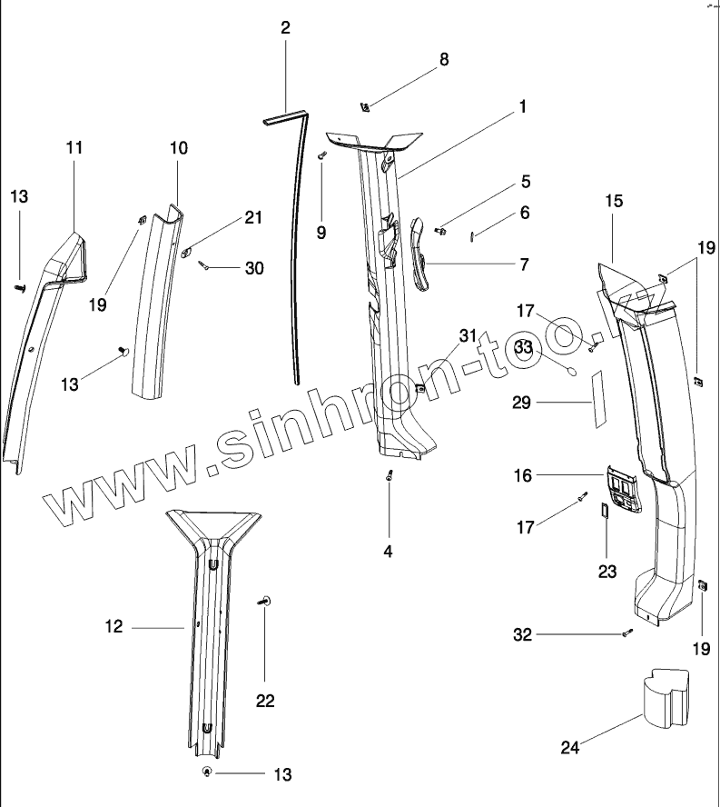 Каталог запасных частей к технике: CASE IH MX-305 Magnum. CAB - TRIM, CAB POSTS