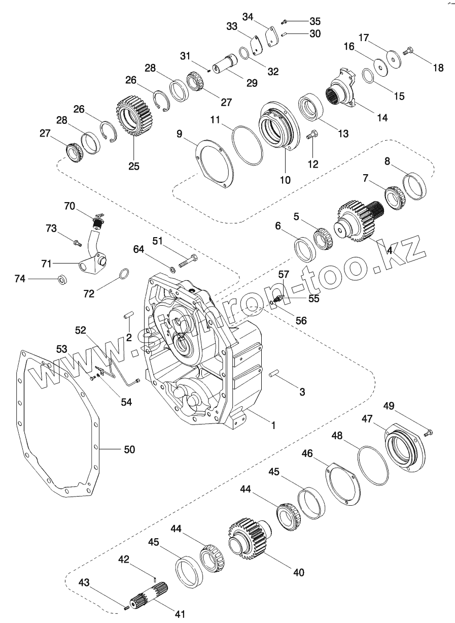 Каталог запасных частей к технике: CASE IH MX-305 Magnum. TRANSMISSION DROP BOX