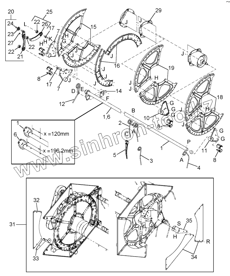 Каталог запасных частей к технике: CASE IH Жатка-2152. PICK UP REEL - SINGLE REEL HEADERS