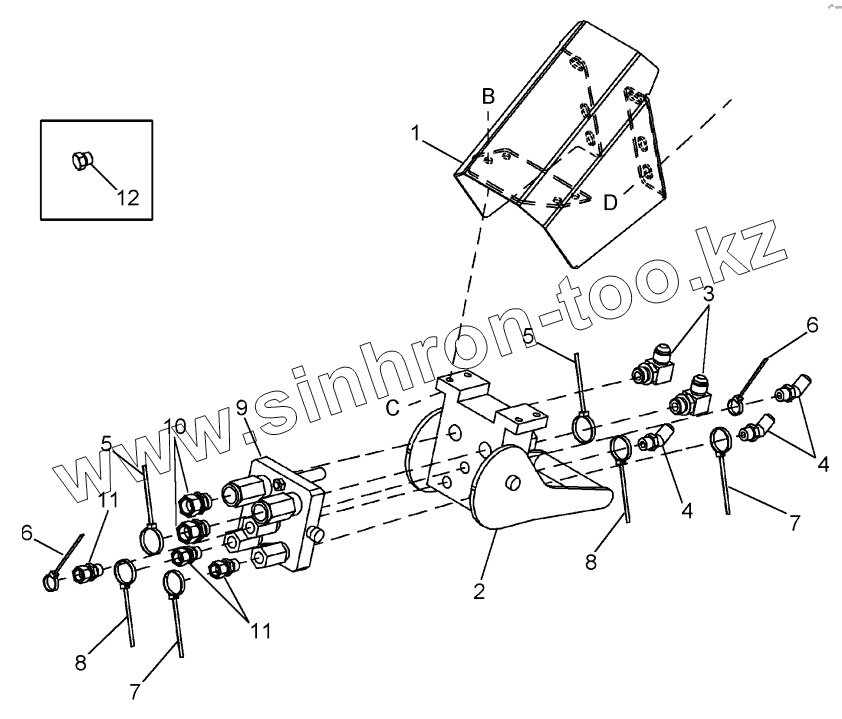 Каталог запасных частей к технике: CASE IH Жатка-2152. REEL HYDRAULICS - COUPLER PACKAGE