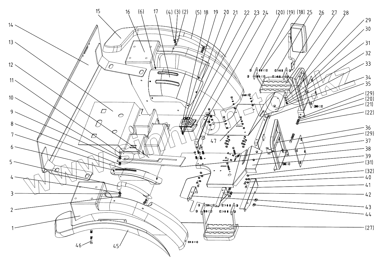 Каталог запасных частей к технике: DongFeng 224G3. Foot Mud Shields Rest