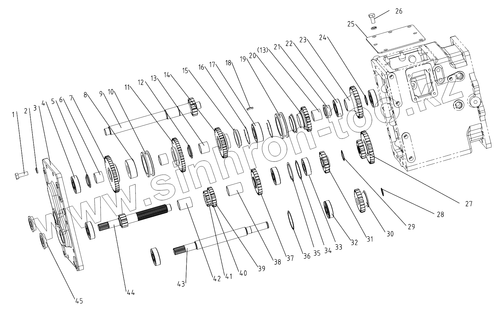 Каталог запасных частей к технике: DongFeng 224G3. Gearbox (A)