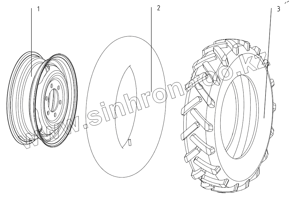 Каталог запасных частей к технике: DongFeng 254EC. Front Drive Wheel (6.00-12)