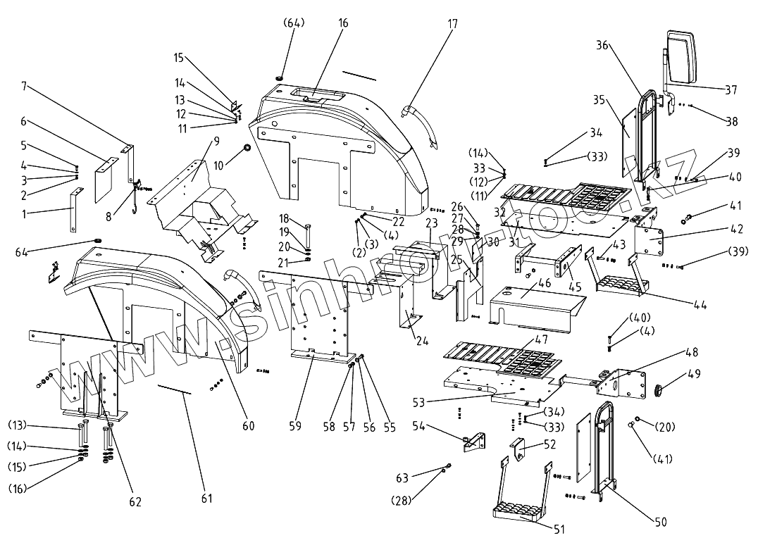 Каталог запасных частей к технике: DongFeng 254G2. Foot Mud Shields Rest