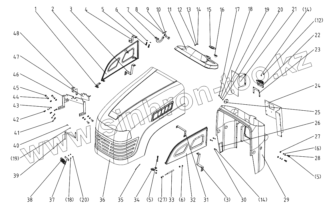 Каталог запасных частей к технике: DongFeng 254G2. Hood and Panel