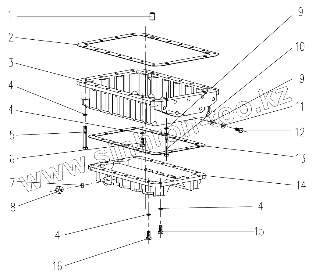 Каталог запасных частей к технике: DongFeng 254G2. Oil Sump Assembly