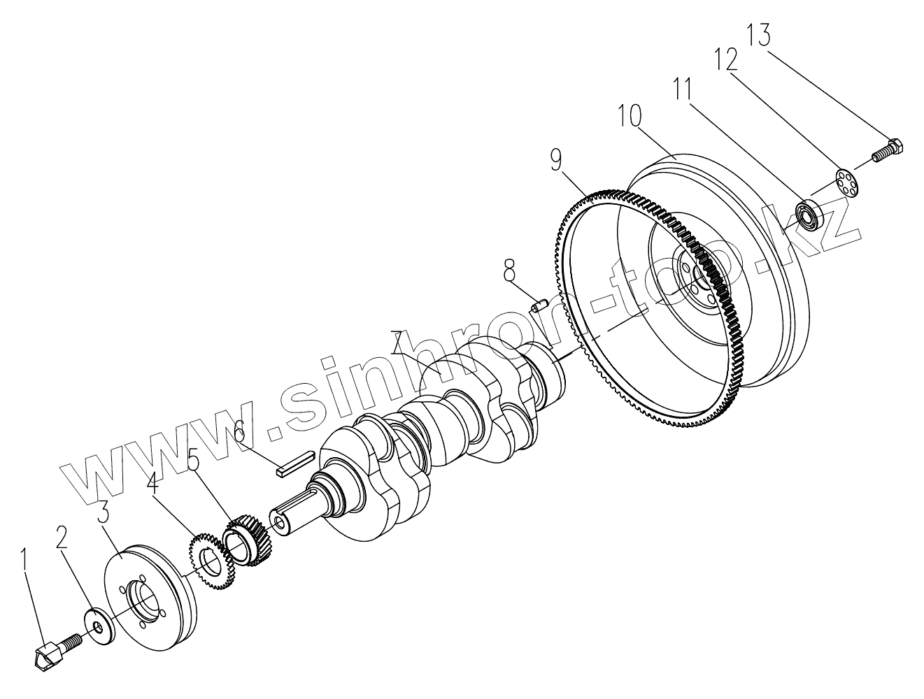 Каталог запасных частей к технике: DongFeng 304EC. Crankshaft and Flywheel Assembly