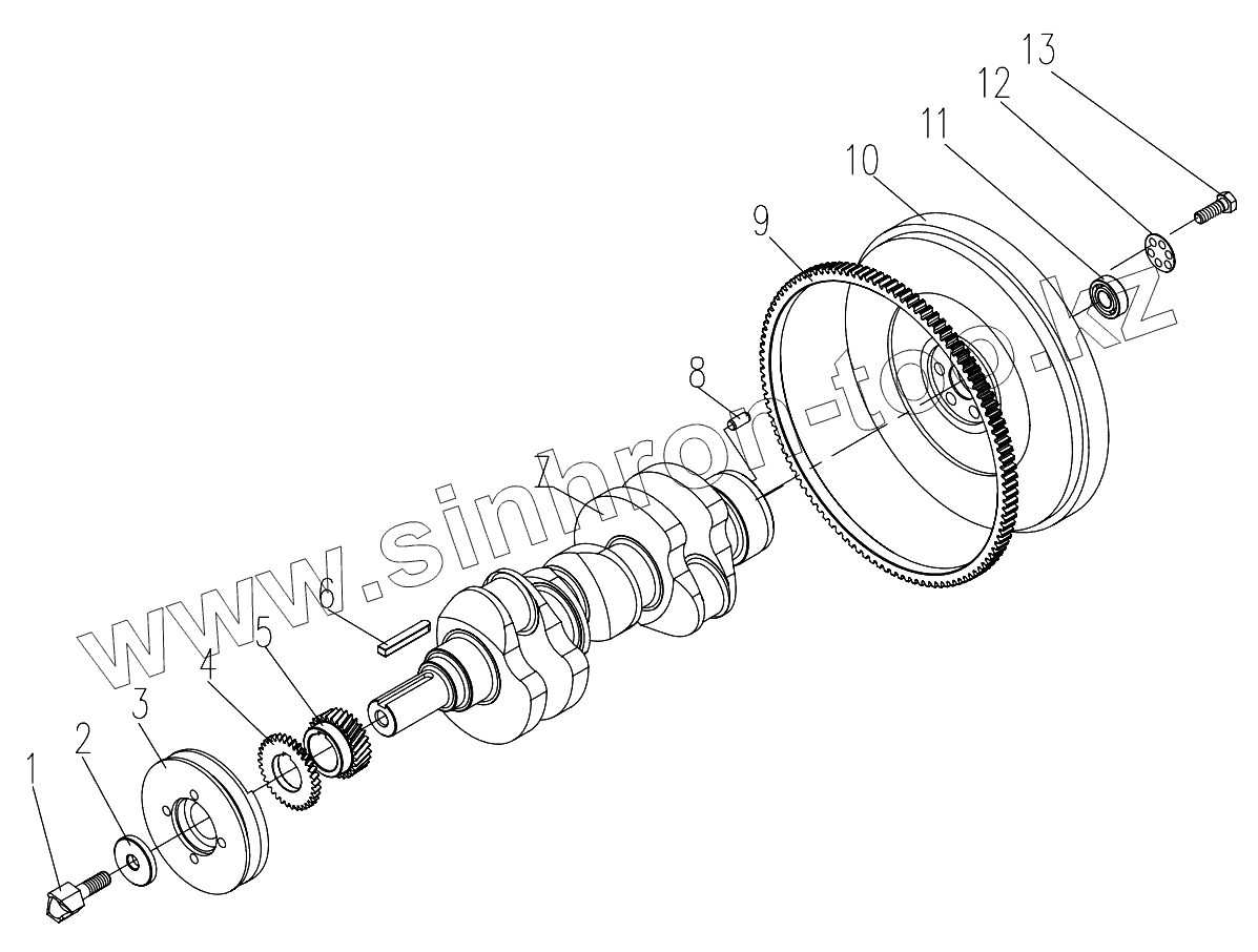 Каталог запасных частей к технике: DongFeng 304G2. Crankshaft and Flywheel Assembly