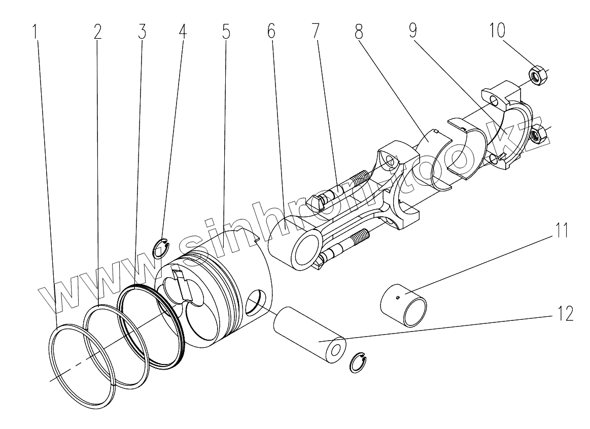 Каталог запасных частей к технике: DongFeng 304G2. Piston and Connecting Rod Assembly