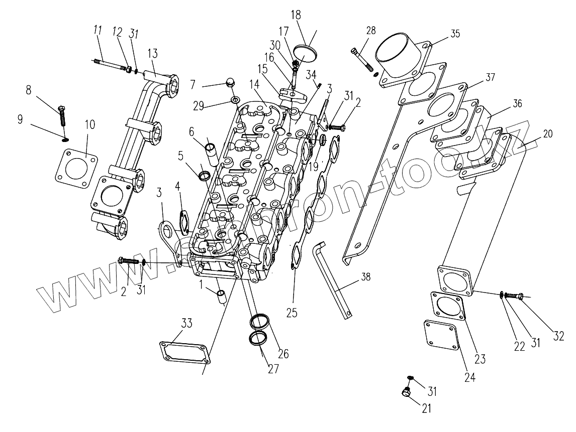 Каталог запасных частей к технике: DongFeng 404CE. Cylinder Head Assembly